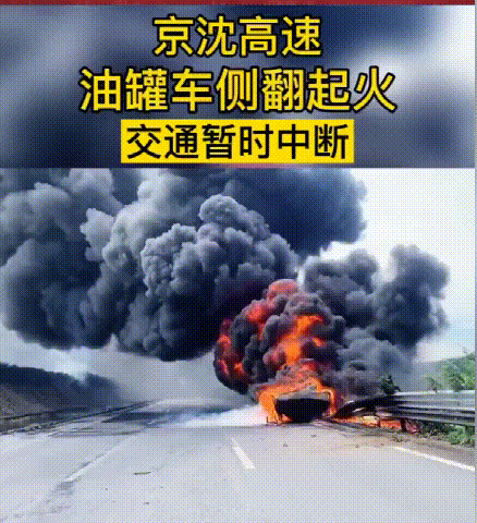 京沈高速油罐車側(cè)翻起火