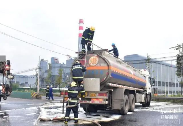12時30分,油罐車剩余油料倒灌完畢,事故車輛在一輛消防車的護(hù)送下安全駛離現(xiàn)場。